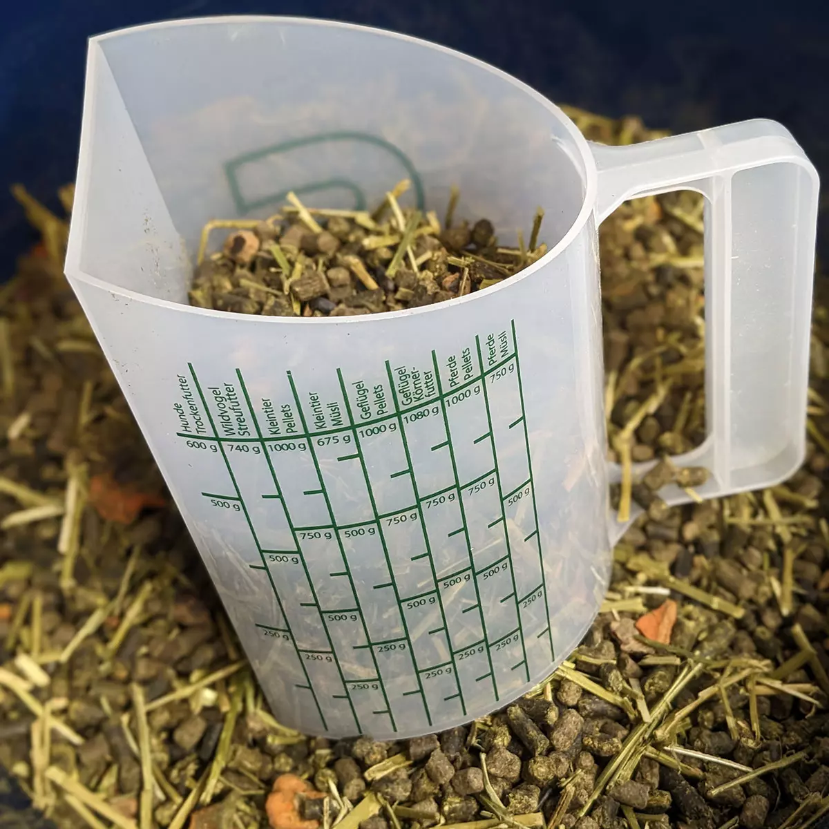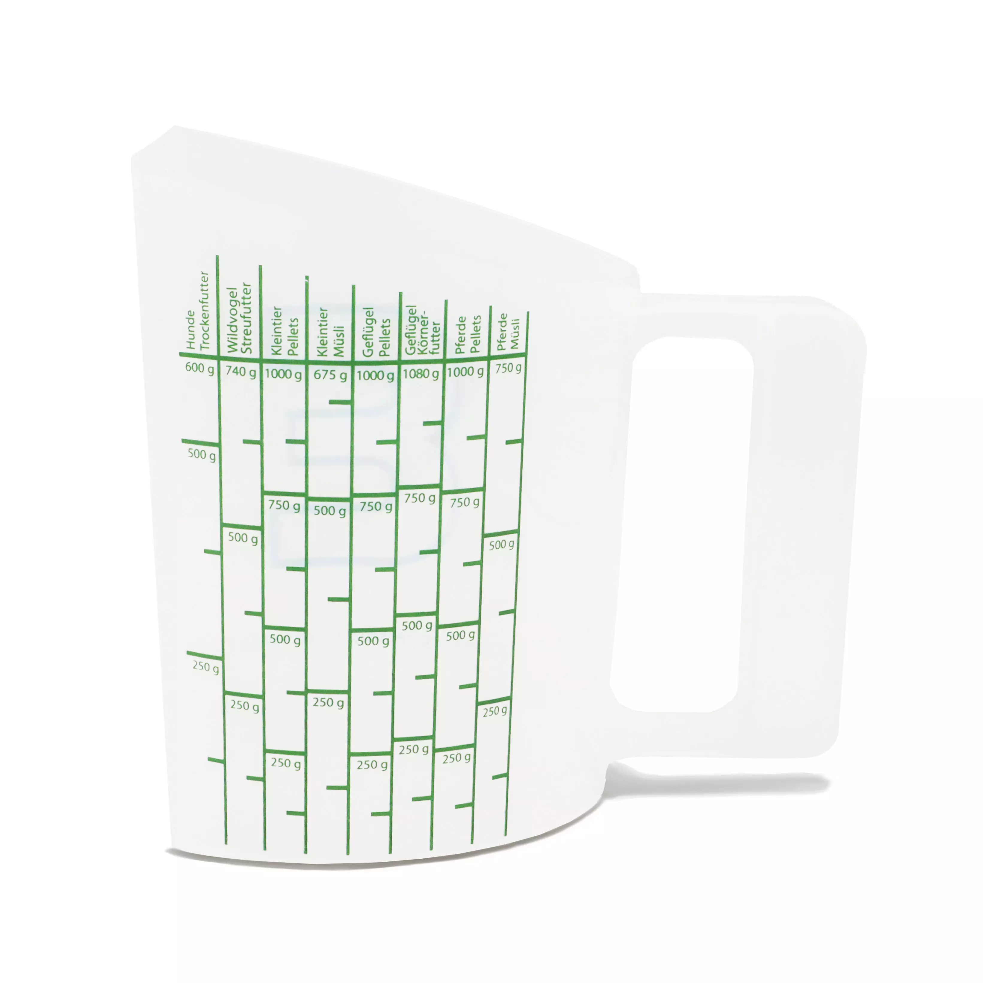Bestehend aus transparentem Polypropylen Kunststoff ist der Futtermessbecher robust genug, um den alltäglich Einsatz im Stall langfristig zu begleiten. Der transparente Look gewährt Einblicke auf das Futter im Inneren.