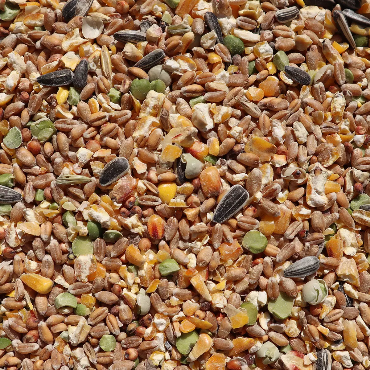 To cover the daily nutritional demand of your poultry, combine Körnerpick Grain Feed Premium in ratio 1:2 with laying mash or laying pellets.
