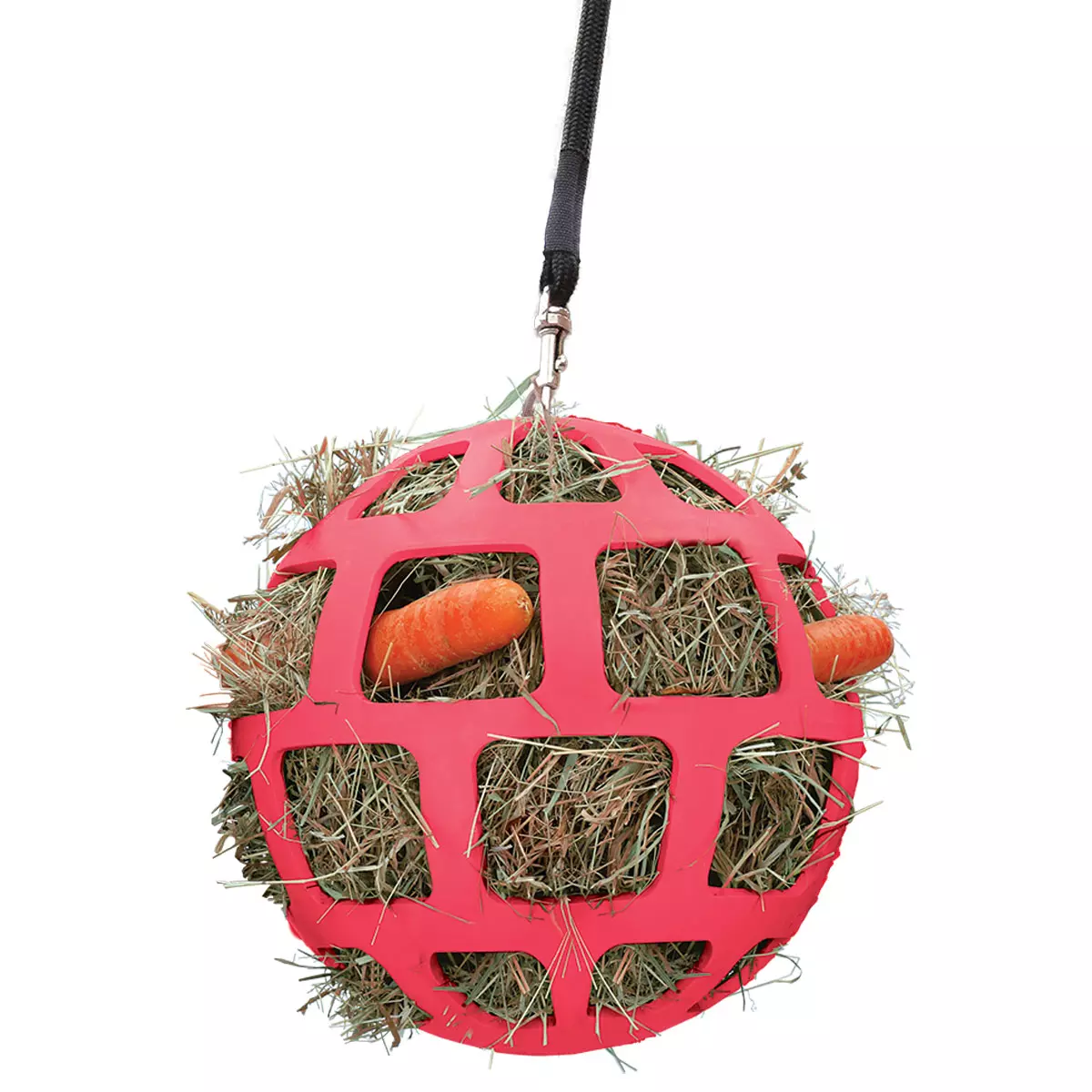 Fill this ball with hay or add some extra goodies (e.g. vegetables, fruits or herbs) to keep your horse busy for hours. The flexible ball is made entirely of natural rubber and is easy to fill and clean.