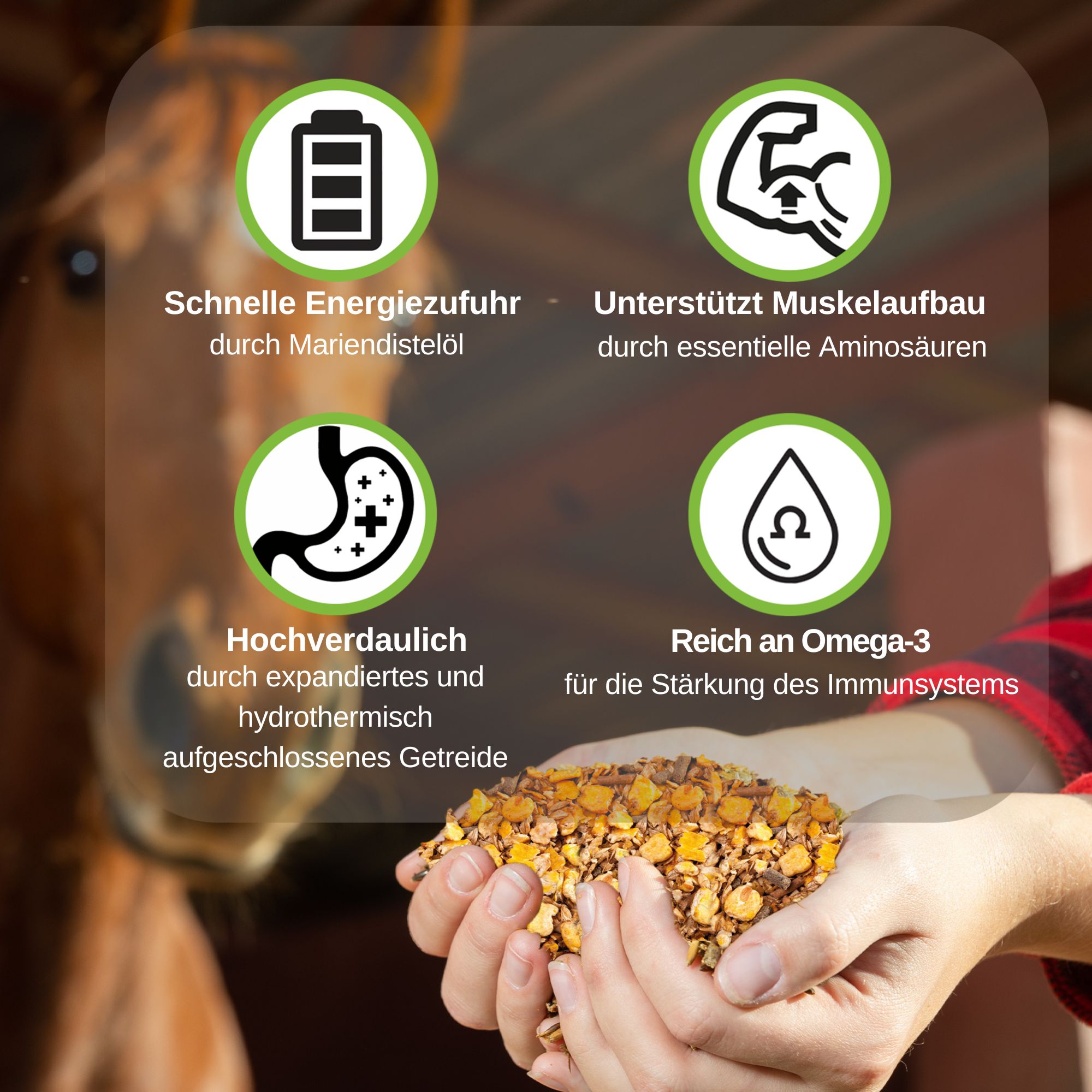 However, if you are unsure about choosing the right horse feed or need help with the optimal ration design for your horse, we will be happy to assist you. Please use our consultation form or contact us by phone.