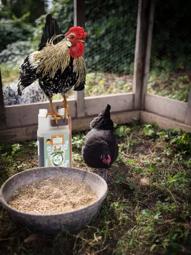 Zur Stärkung der Vitalität und Förderung der Stresstoleranz, kann man den Hühnern sehr gut über eine Darmflorastärkende Kur helfen, die Mauser bzw. die kalte Jahreszeit besser durchzumachen. Bewährt haben sich dafür spezielle fermentierte Pflanzenextrakte wie das Körnerpick EMH Hühner Vital Direkt. Die durch natürliche Mikroorganismen fermentierten Kräuter unterstützen eine ausbalancierte Darmflora und fördern dadurch gleichzeitig eine verbesserte Nährstoffaufnahme.