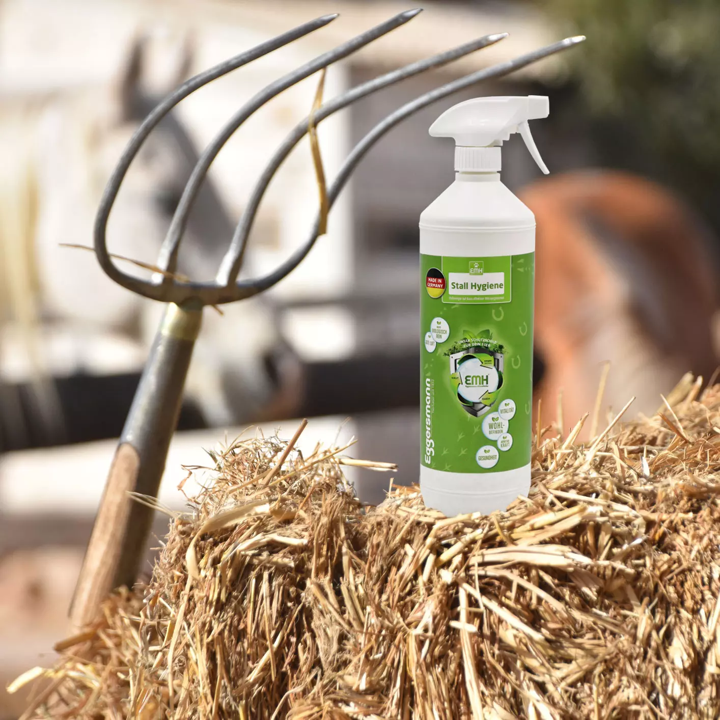 For basic cleaning spray all surfaces of the mucked barn with pure EMH Stable Hygiene.