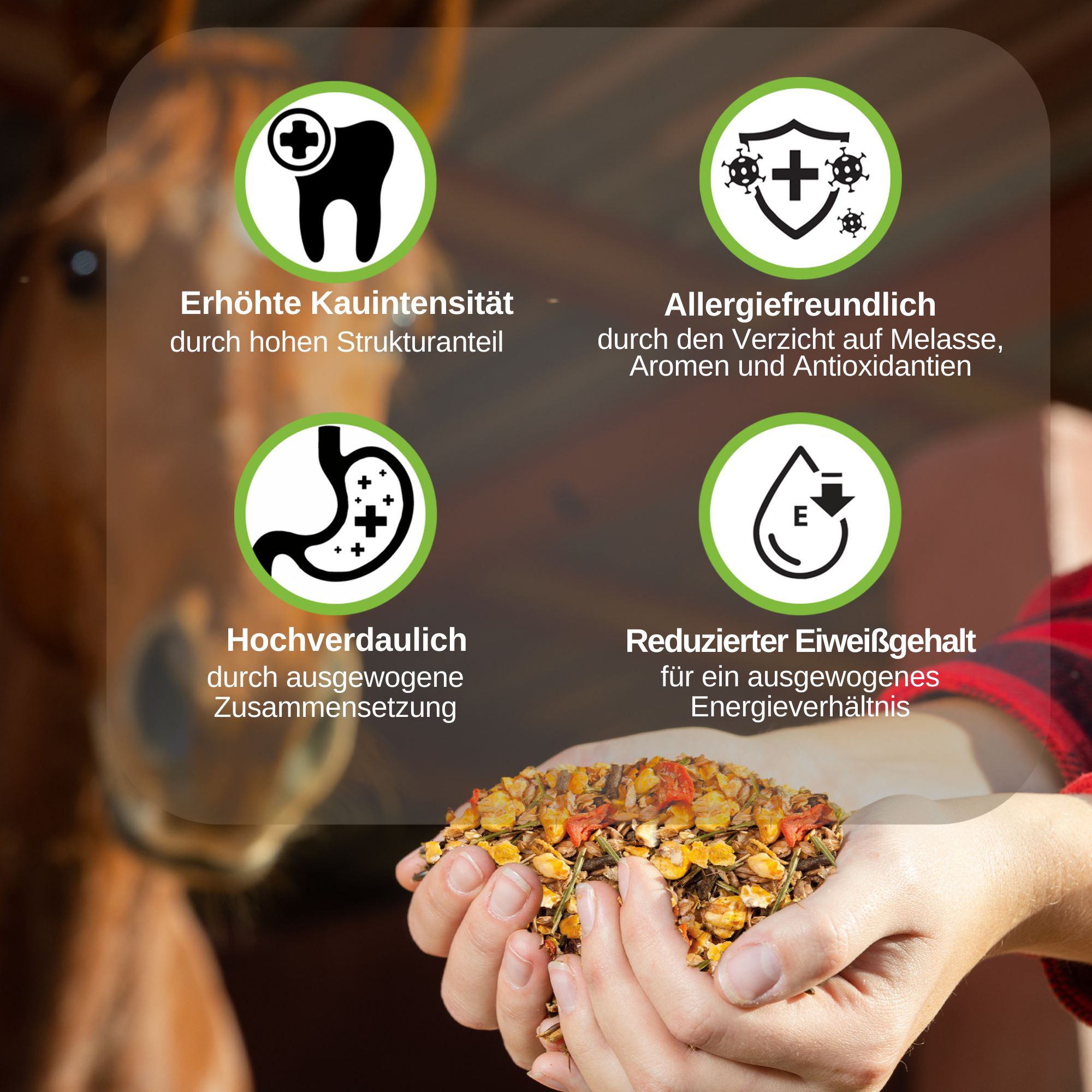 A versatile, tasty muesli, as intended by nature, for all those who are looking for something special for their horses