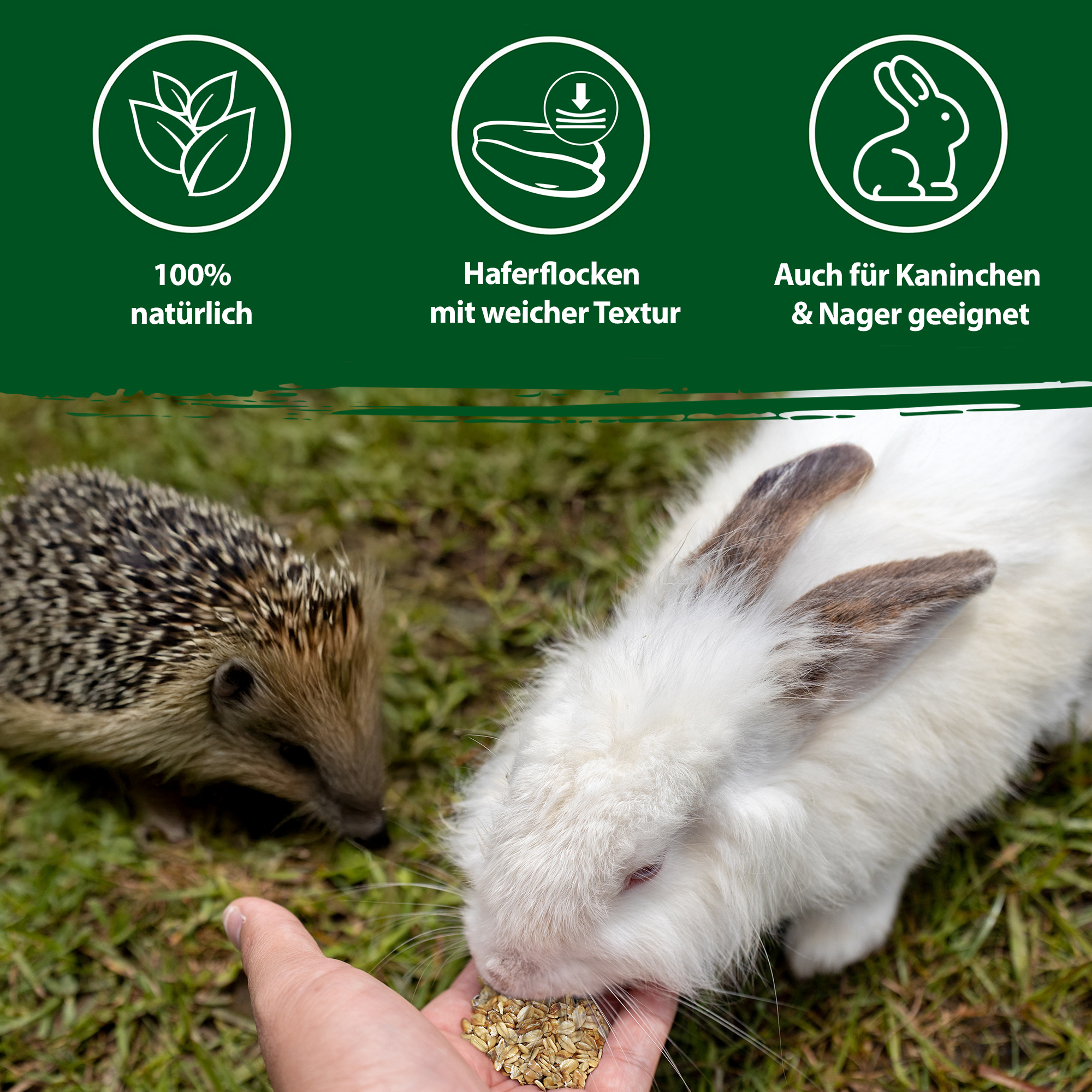 Auch Kaninchen und Nager mögen Haferflocken. Diese sollten grundsätzlich keine gekochten Speisen verzehren. Daher sollten Sie auch Haferflocken ausschließlich roh anbieten. Diese dürfen direkt zum trockenen Futter beigemengt oder einfach über das Heu gestreut werden. Außerdem können Haferflocken auch direkt aus der Hand als Belohnung oder Leckerei angeboten werden. Haferflocken sind im Vergleich zu frischem Gemüse über einen längeren Zeitraum haltbar und können problemlos bereits morgens gefüttert werden.