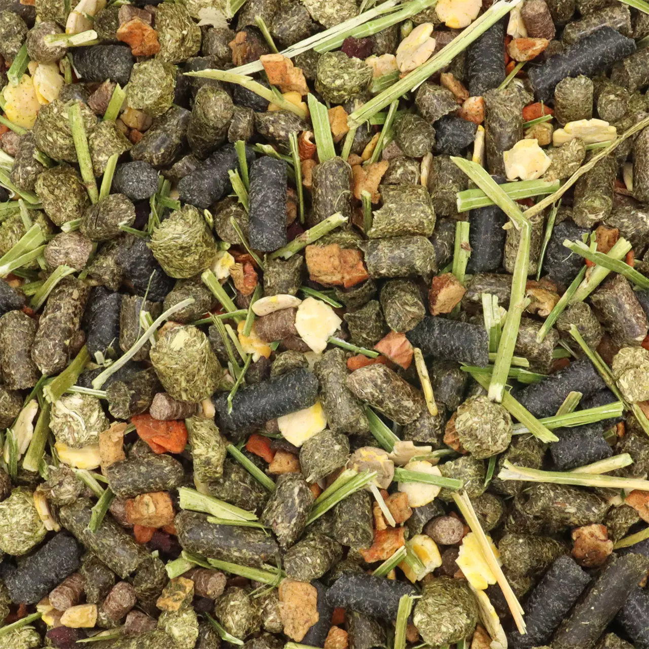 Our Uncle Pet Premium grain-free Rabbit Muesli is a rich and varied textured muesli for all rabbit and dwarf rabbit breeds. The raw fibre-rich mix with delicious, vitamin-rich vegetables, valuable grasses and tasty lucerne helps with the important abrasion of constantly growing teeth and supports digestion with its high structure content. The black cumin seed cake it contains belongs to the oilseed family and not only provides essential oils, but also vitamins, minerals, trace elements, essential and non-essential amino acids, which can have a supportive effect on the entire organism. Our grain-free muesli therefore provides an optimal nutritional basis for a healthy animal life.