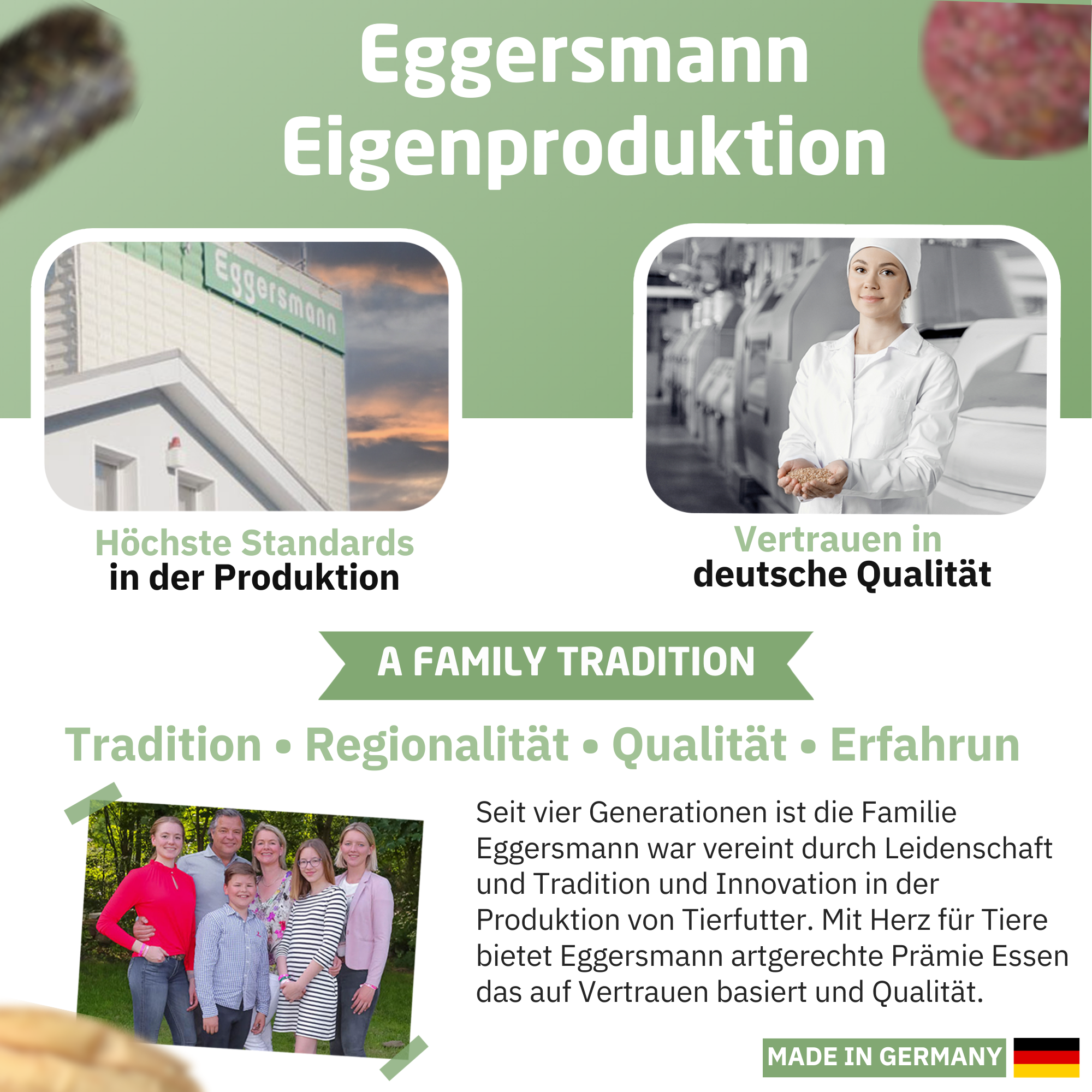 The traditional family business Heinrich Eggersmann Futtermittelwerke GmbH is located in the middle of the Weserbergland, where it has been operating the Wesermühle in Rinteln with a lot of know-how, heart and soul since 1932. By combining a passion for the miller's craft with a love of animals, Eggersmann Tierfutter has since developed into a major specialist for tasty premium feed.