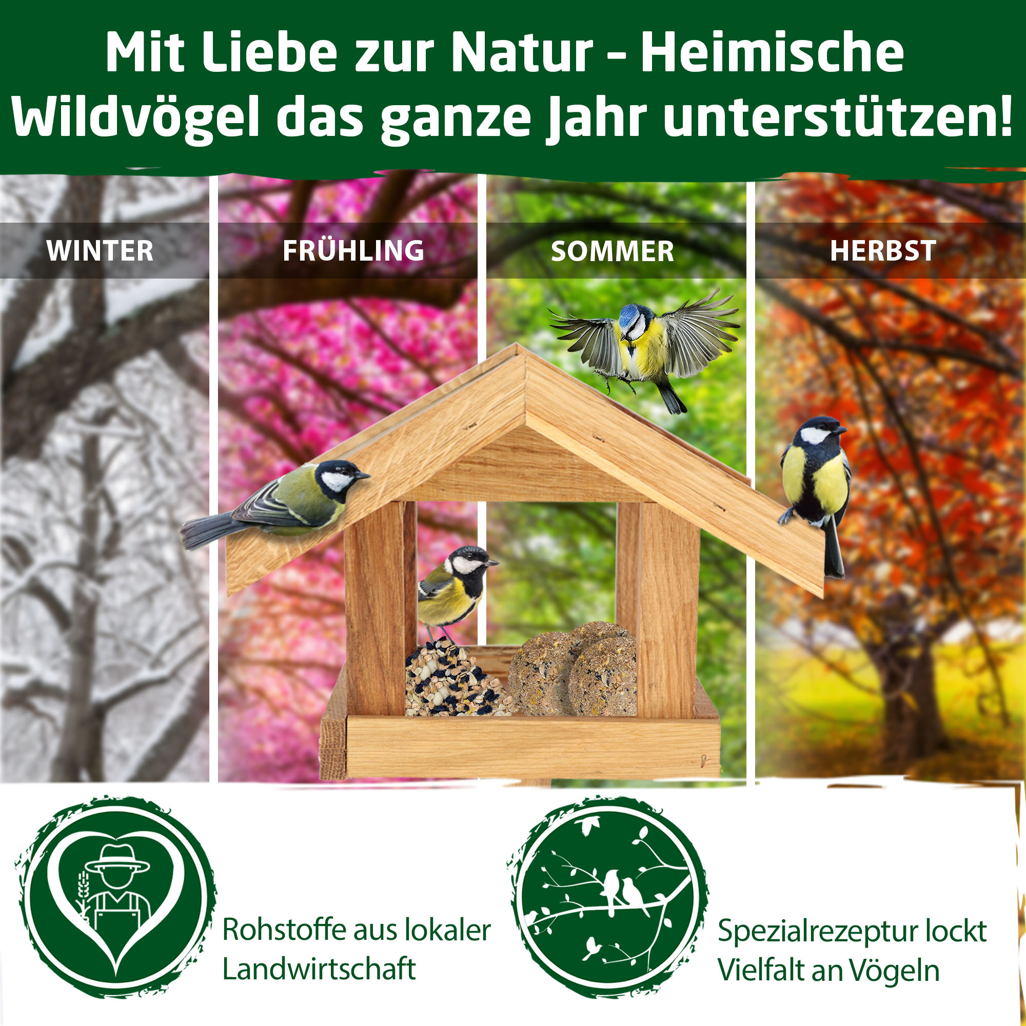 High-quality scattered forage · 100% Made in Germany · for year-round feeding