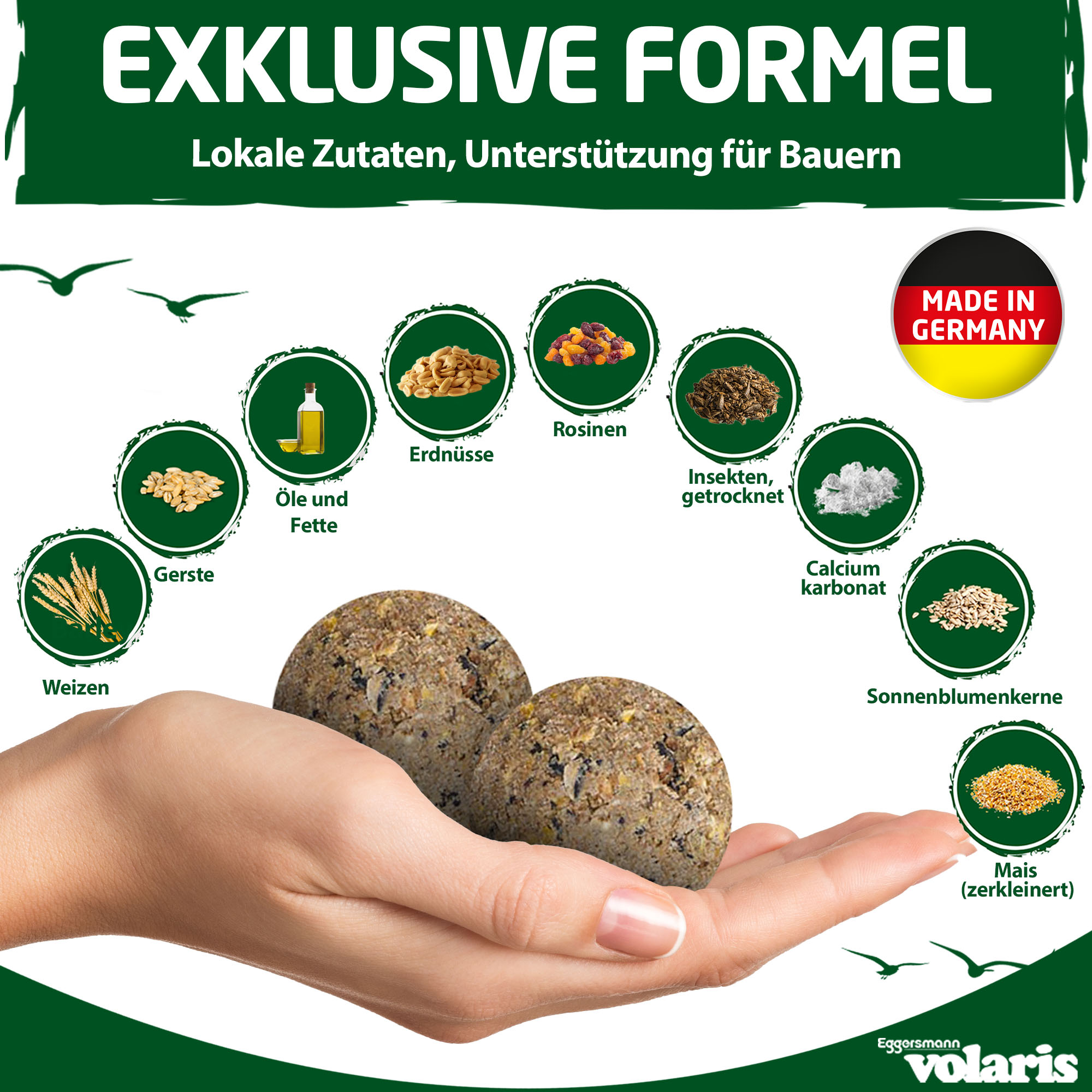 GRAINballs with insects · 100% Made in Germany · for year-round feeding