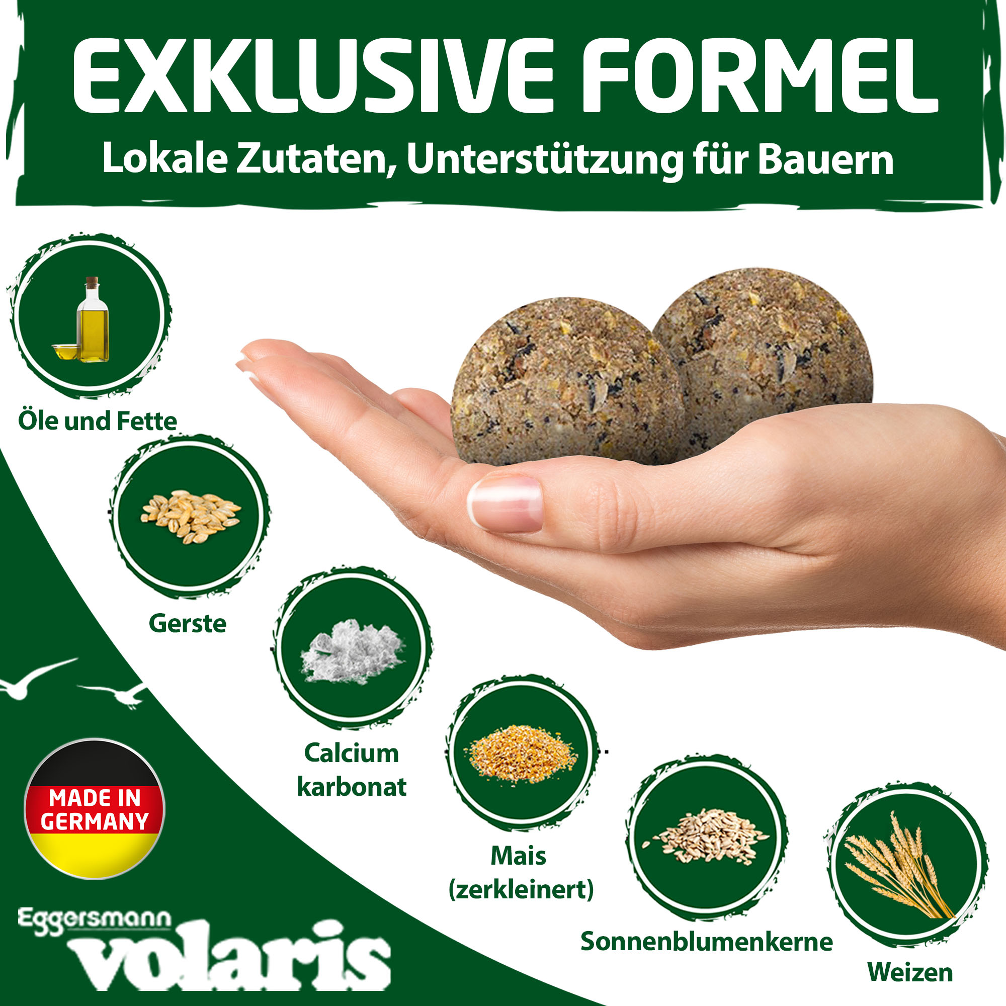 The Eggersmann volaris range now extends from the classic fat feed and scatter feed to fat Balls and muesli or nut bars. Due to the love of bird watching of each of our employees, we can prove the good acceptance of our volaris products with numerous tastings by a wide variety of wild birds.